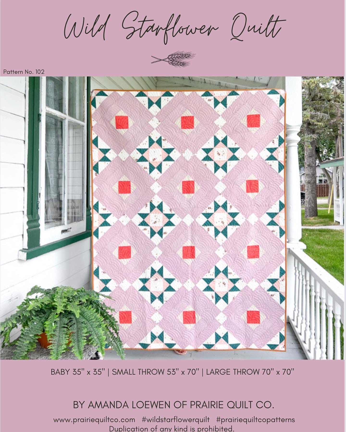 This modern, block-based pattern is appropriate for quilters of all skill levels. The Wild Starflower design features alternating flowers and stars and can be made in two different colour variations to create a wide variety of looks.