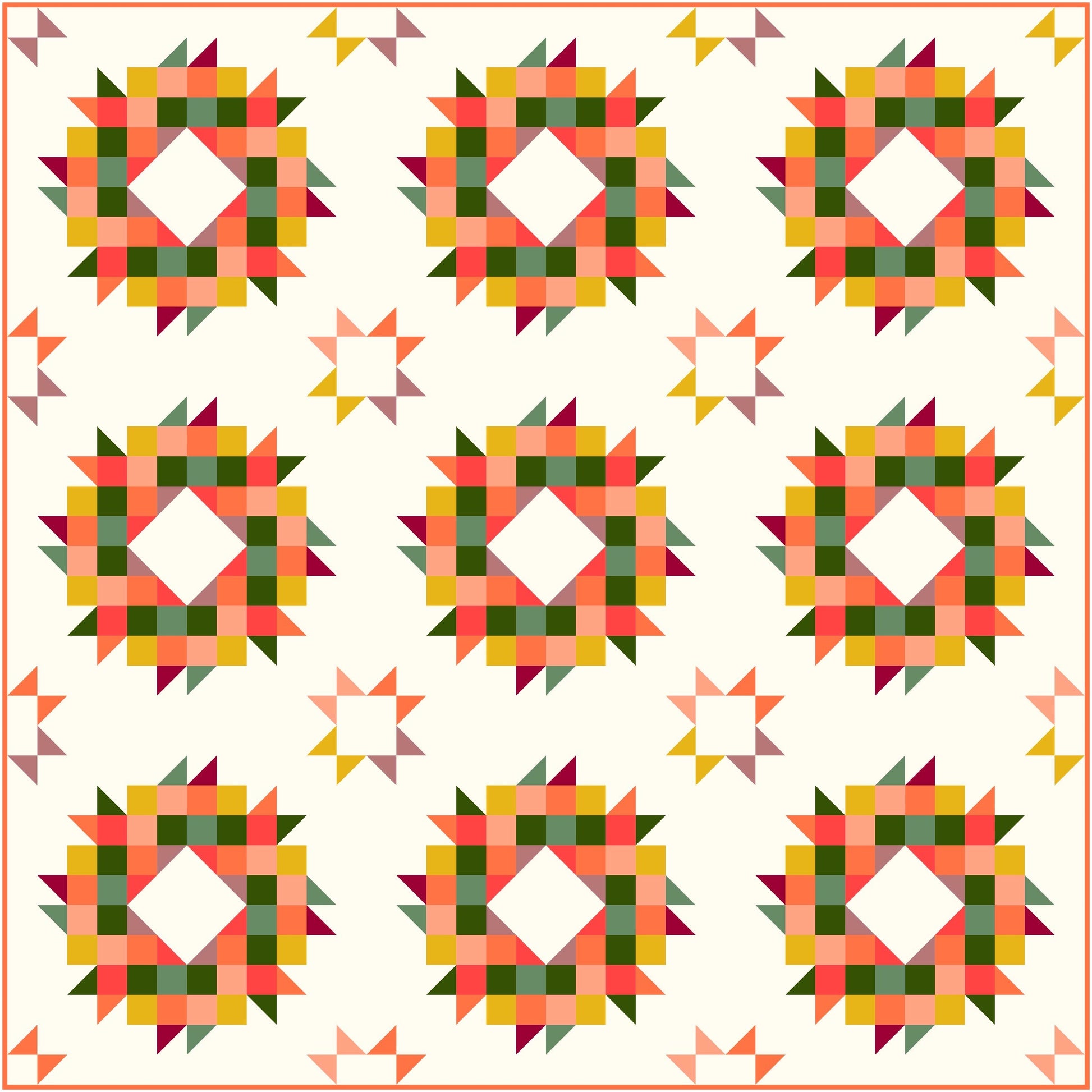 Available as a downloadable PDF, this beginner-friendly pattern includes instructions to sew a 18" x 18" mini quilt that can be used as a wall hanging, table topper, throw pillow cover, or grow to a throw quilt.
