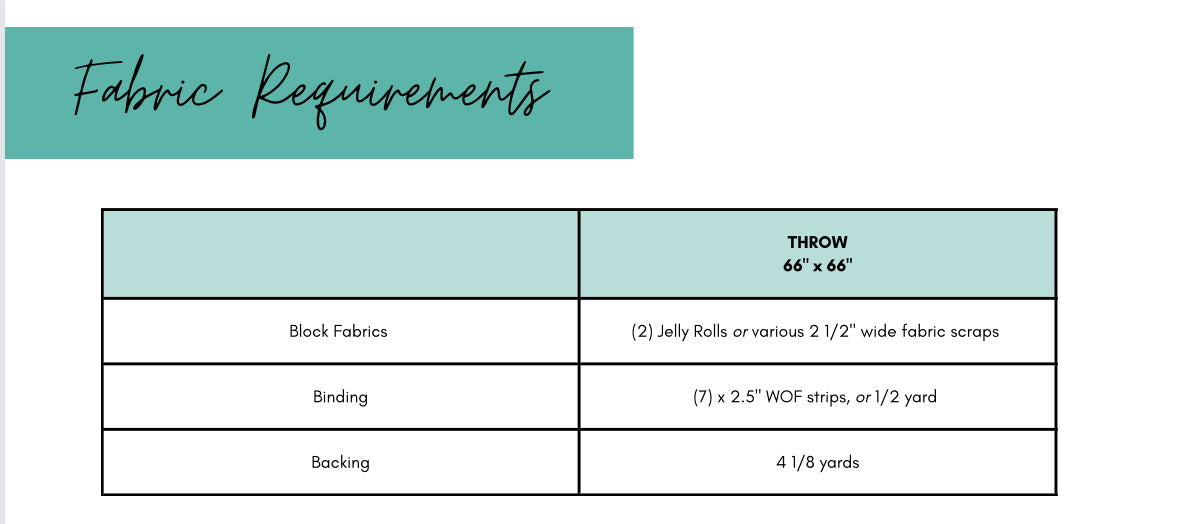 Available as a downloadable PDF, this pattern includes instructions to sew a 66" x 66" throw quilt, with tips on how to create different sized quilts by sewing more or less blocks.