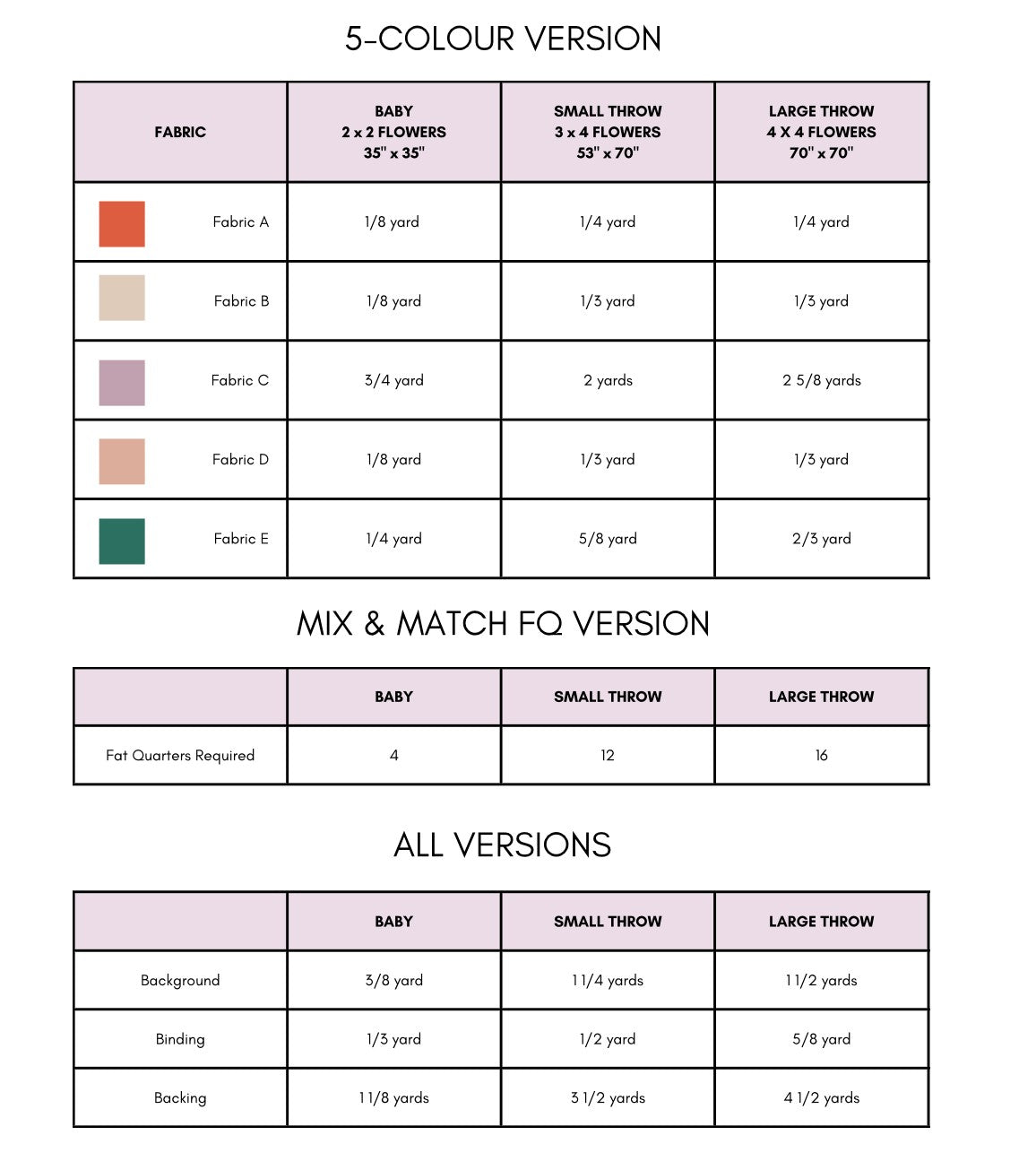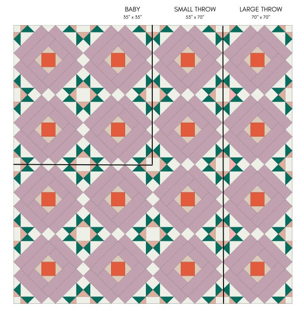 This modern, block-based pattern is appropriate for quilters of all skill levels. The Wild Starflower design features alternating flowers and stars and can be made in two different colour variations to create a wide variety of looks.